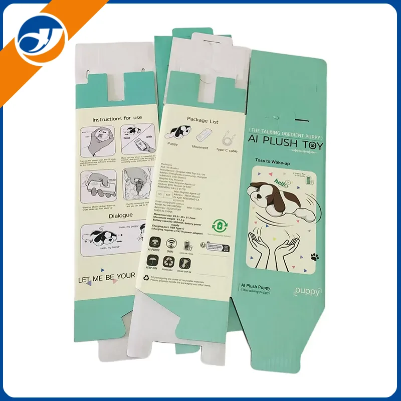 To je škatla iz valovite embalaže po meri, zasnovana posebej za plišasto igračo kužka. Ta barvno natisnjena škatla, izdelana tako za zaščito kot za pripovedovanje blagovne znamke, združuje funkcionalno zasnovo z okolju prijaznimi materiali, zaradi česar je idealna rešitev za pakiranje plišastih igrač. Izdelan iz valovitega kartona, ki ga je mogoče reciklirati, vsebuje jasna navodila za uporabo, podroben seznam paketov in sporočila blagovne znamke za izboljšanje izkušnje razpakiranja, hkrati pa je usklajen s trajnostnimi praksami.